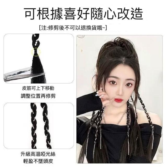 台灣發票 快速出貨 假髮雙馬尾 拳擊辮 Y2K辣妹 拳擊辮 挑染無痕麻花辮 髮片 假髮 髮圈 辮子 魚骨馬尾 舞蹈表演