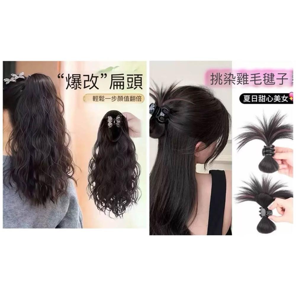 台灣快速出貨 雞毛毽子 雲燙馬尾 慵懶雞窩丸子頭假髮抓夾 慵懶風甜酷辣妹仿真丸子頭 自然高顱頂