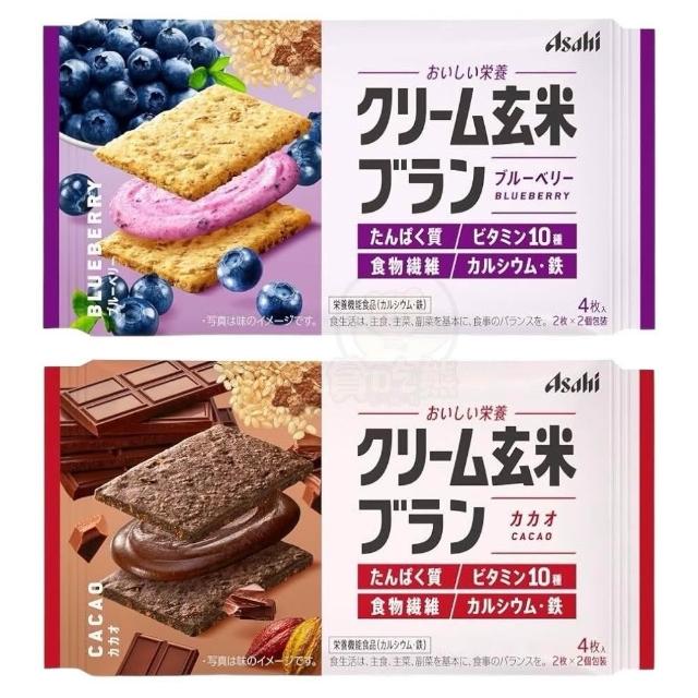 ASAHI 朝日*貪吃熊*日本 Asahi 朝日 玄米夾心餅乾 藍莓風味 可可風味 夾心餅乾 效期2026年7月