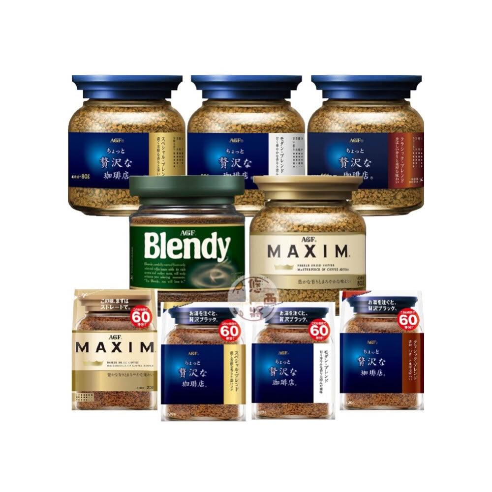 AGF*貪吃熊* 日本AGF MAXIM 玻璃罐裝即溶咖啡 金色箴言 藍色華麗贅澤 黑色深煎烘焙 白色摩卡