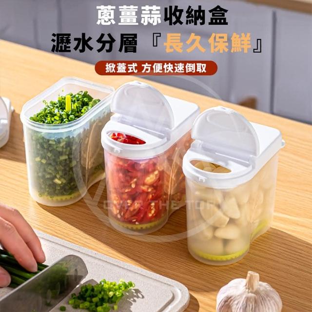 日本 SURUGA 蔥花保鮮盒(瀝水隔層)(掀蓋保存盒 蔥花盒 瀝水保鮮盒 調味料保鮮盒 大蒜辣椒保鮮盒)