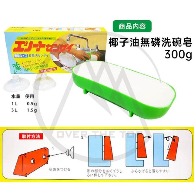 日本製 椰子油無磷洗碗皂 300g 附吸盤(日本椰子洗碗皂 廚房洗碗皂 洗碗皂 洗碗精 沙拉脫 碗盤清潔劑)
