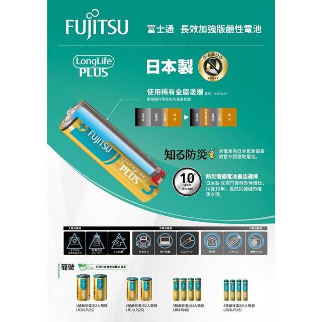 FUJITSU 富士通日本製 富士通FUJITSU 防漏液鹼性電池(1號 2號 3號 4號電池 電子鎖防漏液電池)