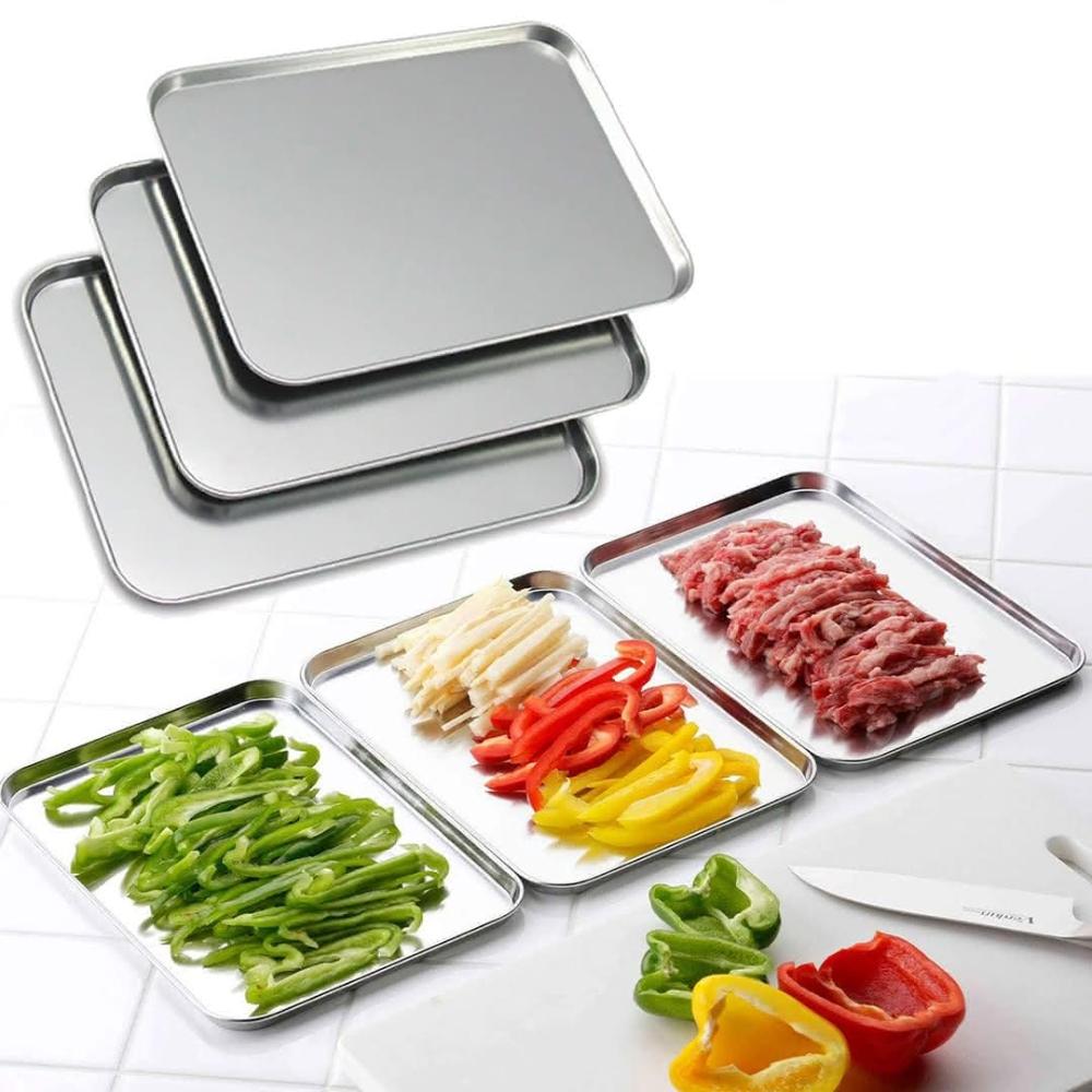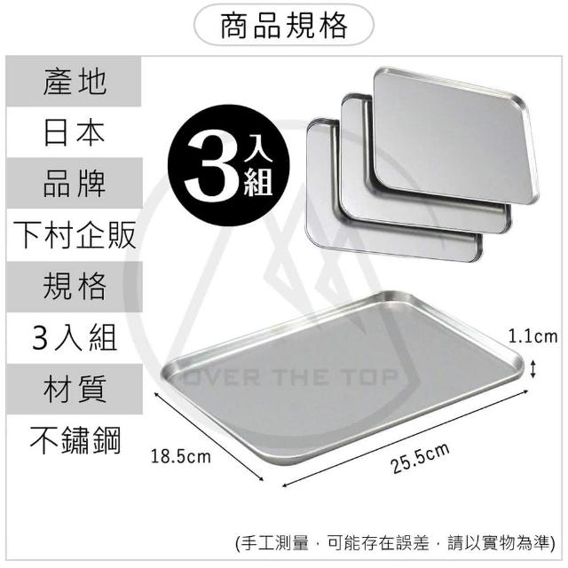 下村工業日本製 不鏽鋼料理盤(3入組)/淺型調理盤 瀝油盤 備料盤 備料碗 不鏽鋼方盤 廚房托盤
