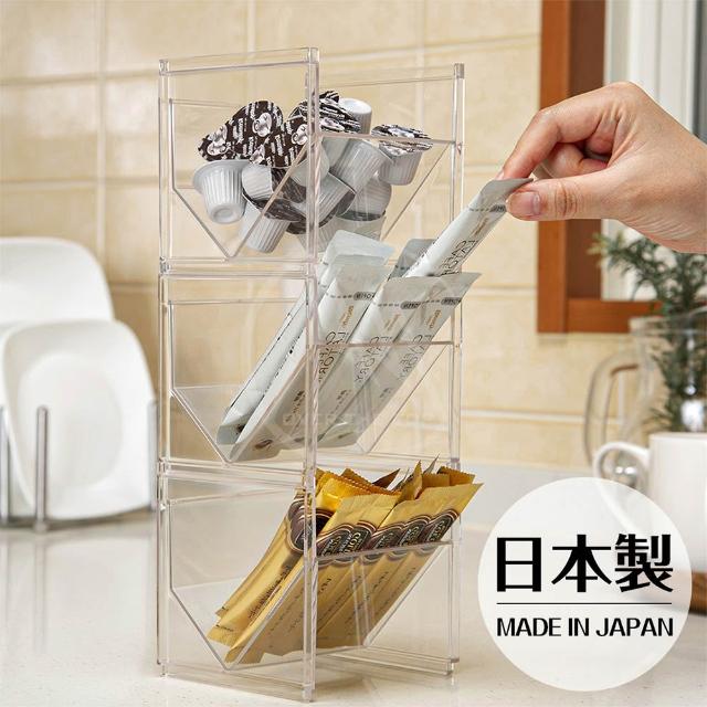 inomata日本製 茶包收納盒/咖啡包收納架 透明收納架 調味包收納盒 廚房收納 小物收納盒 化妝品收納盒 斜取置物架