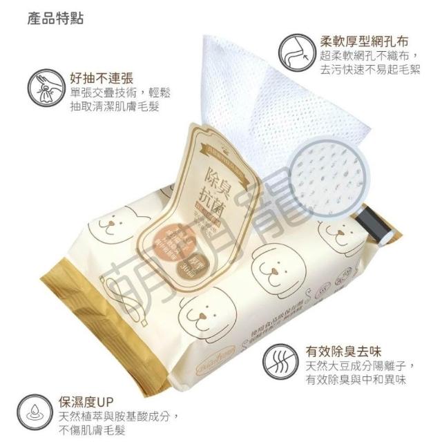 Baan 貝恩寵物除臭濕巾 30抽*3包(寵物濕紙巾/狗狗濕紙巾/貓咪濕紙巾)