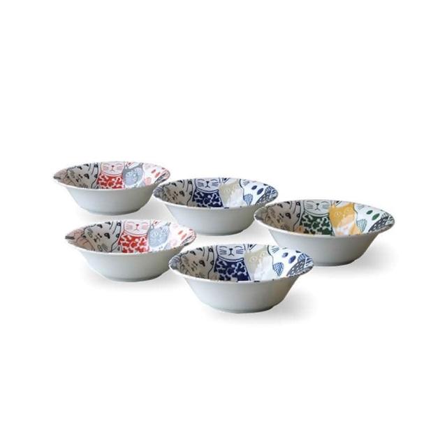 AWASAKA 粟日本製 可愛 貓貓餐碗美濃燒/大碗/5入組/瓷器