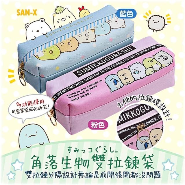 San-X角落生物雙拉鍊筆袋雙層筆袋 長方形筆袋 文具收納 收納袋 鉛筆盒