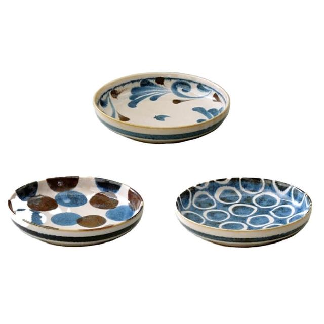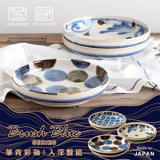 AWASAKA 粟筆青彩釉3入深盤組 美濃燒 筆青 釉繪 深盤3入組