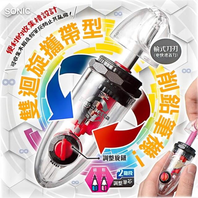 SONIC雙迴旋攜帶型 削鉛筆機(紅) 日本削鉛筆機 SONIC文具 迷你削筆器 攜帶型文具 雙迴旋削筆機