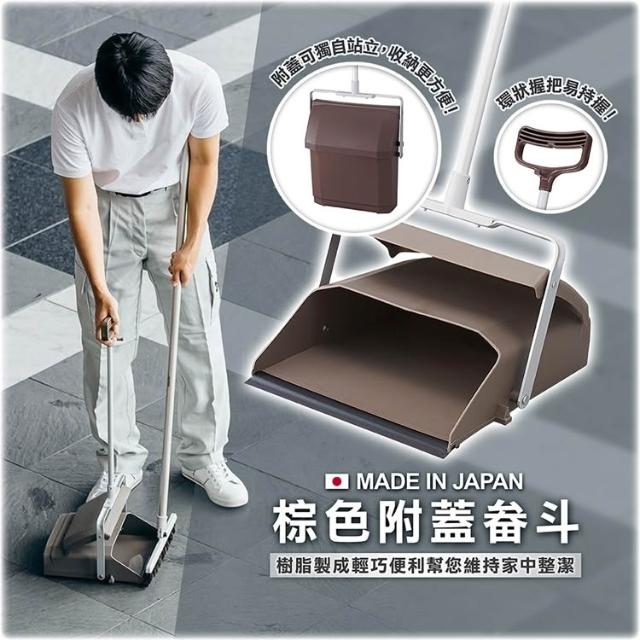 附蓋畚斗 (棕) 掃地畚斗 立式畚斗 畚箕 帶蓋 家用清潔工具 室內清潔畚斗 防塵畚斗 廚房畚斗