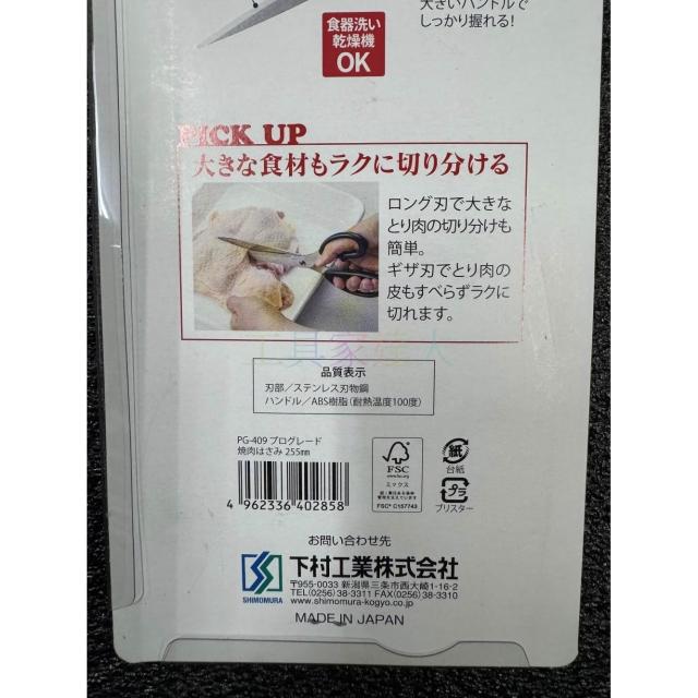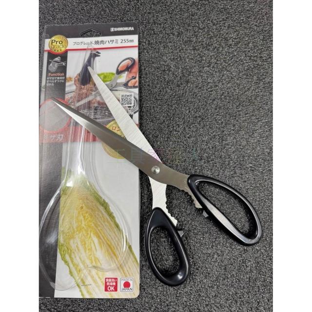 下村工業日本製 下村工業 SHIMOMURA 燒肉剪刀 廚房料理剪刀 廚房剪刀 25.5cm PG-409 黑色加長