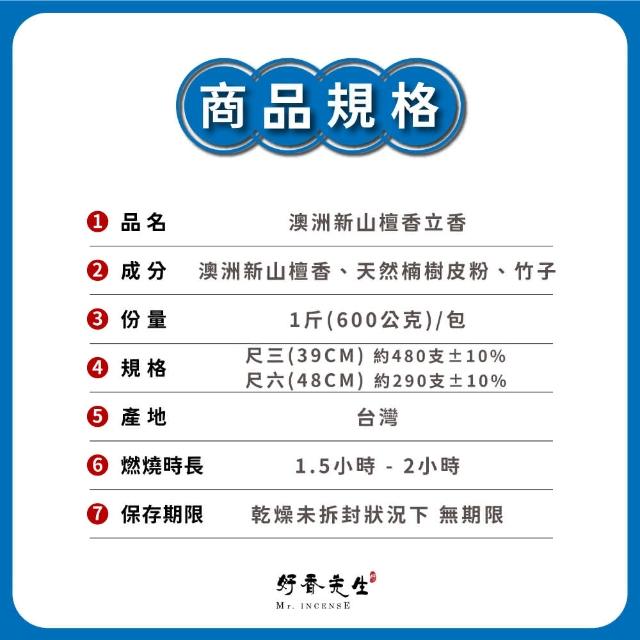 Mr.INCENSE 好香先生立香 拜拜香 澳洲新山檀香立香 1斤裝(檀香 線香 環保香 招財 尺三 尺六 新山檀香)