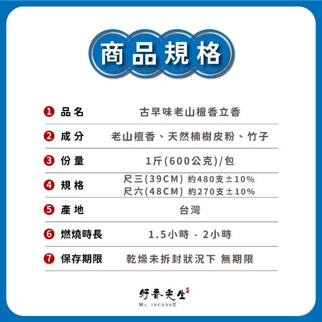 Mr.INCENSE 好香先生立香 拜拜香 古早味老山檀香立香 1斤裝(檀香 線香 環保香 招財 尺三 尺六)