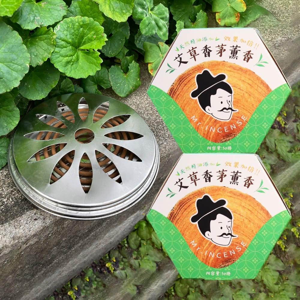 Mr.INCENSE 好香先生蚊香 艾草蚊香 純天然艾草香茅薰香2盒+簡易蚊香盒(艾草薰香 蚊香盒 天然蚊香)