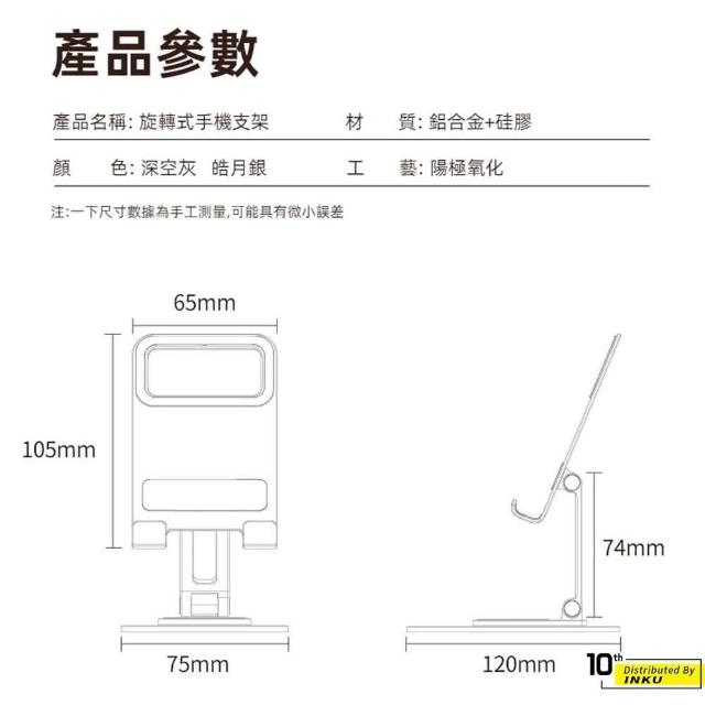 ibitsBON L05MINI 手機款鋁合金旋轉折疊支架 懶人桌面直播支架 多功能旋轉手機平板支架(支架)