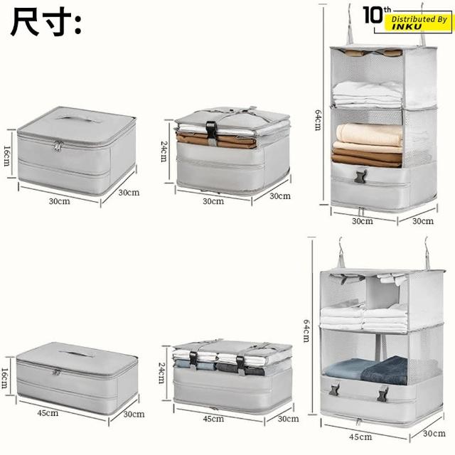 ibits立體旅行懸掛收納袋 掛壁式 20吋行李箱 牛津布 防水雙拉鍊 衣物飯店戶外收納(收納袋-L號30*30*64cm)