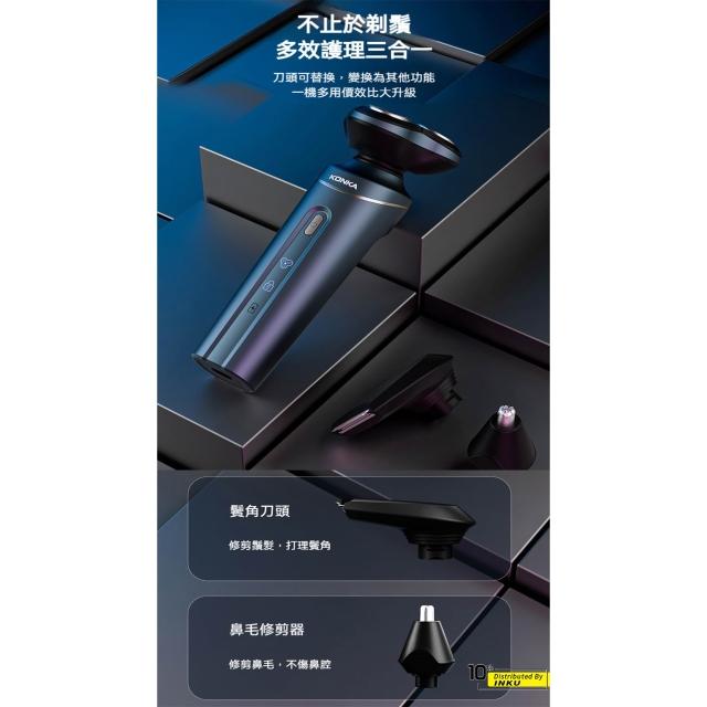 ibitsKONKA康佳 三刀頭刮鬍刀 三合一多功能 磁吸刀頭 USB充電 IPX6防水 KTXD-6014-T
