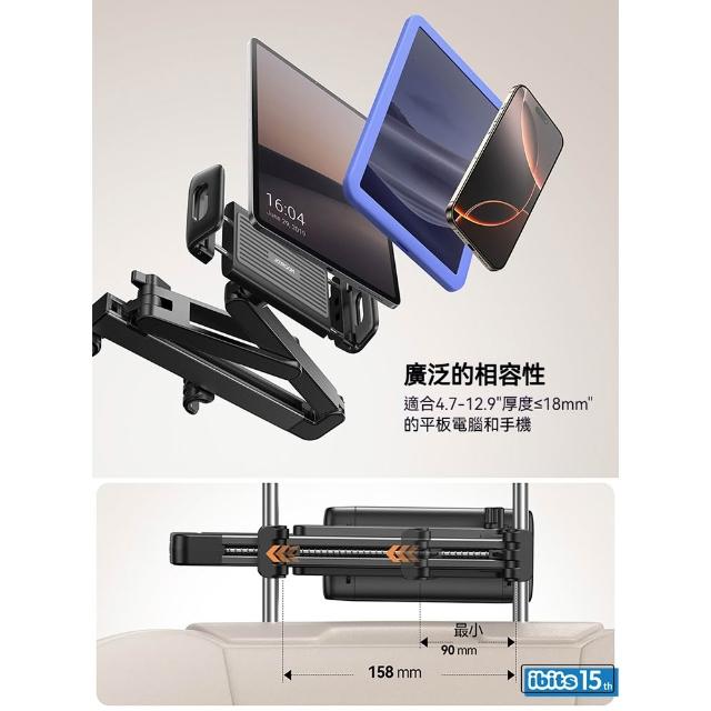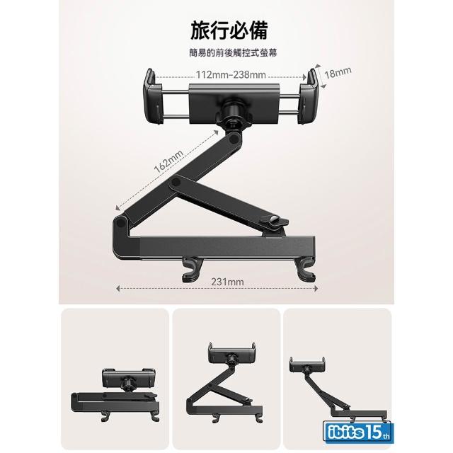 ibits機樂堂 ZS433 車用後枕手機平板支架 雙桿穩固 多角度調節 可鎖定設計