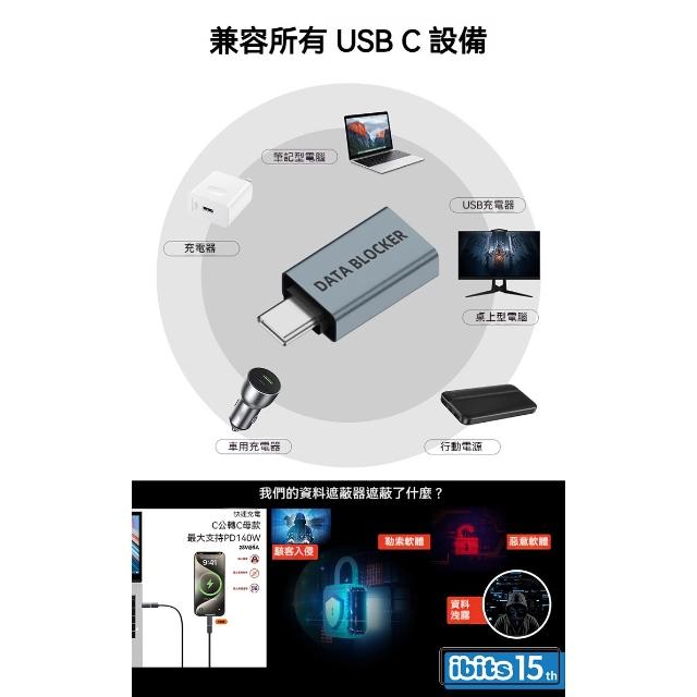 ibitsMDD USB資料屏蔽轉接頭 防資料竊取 防黑客數據洩露 防充電訊息盜竊