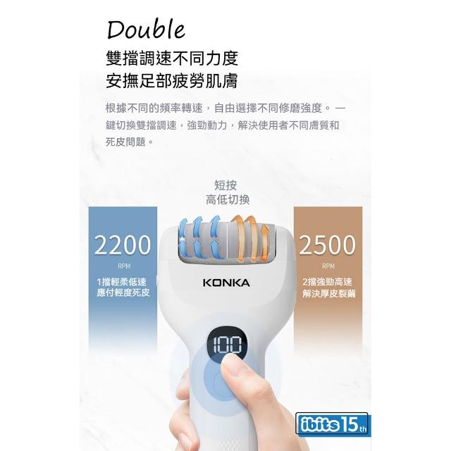 ibitsKONKA 康佳 電動磨腳器 去死皮機 LED數顯 IPX6防水 雙檔調速 去角質 石英磨頭 KXZQ1313T(L)