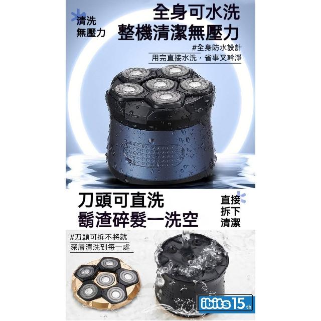 ibitsMericle 六刀頭電動刮鬍刀 可剃光頭 全身水洗 LED數顯 乾濕兩用 Type-C充電 YC808
