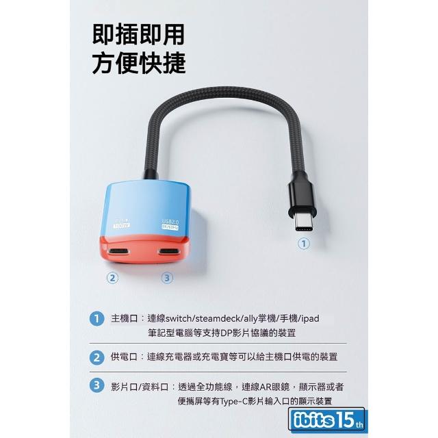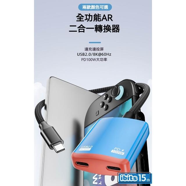 ibitsMDD Type-C一分二全功能轉接器 PD100W快充 8K投屏 AR眼鏡 適用Switch 邊充邊投