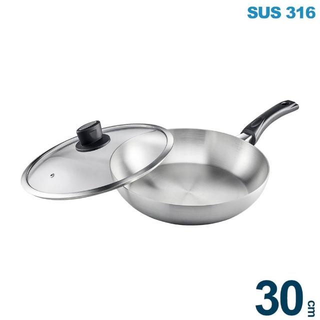 PERFECT 理想台灣製 316七層不鏽鋼平底鍋 30cm 煎鍋/不鏽鋼鍋/不銹鋼/炒鍋/炒菜鍋/玻璃蓋 高密閉