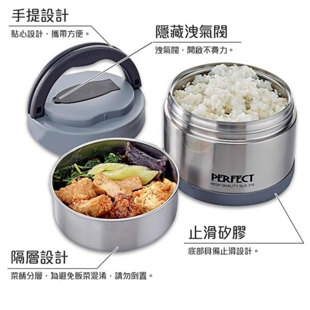 PERFECT 理想台灣製 316不鏽鋼保溫便當盒14cm保溫餐盒