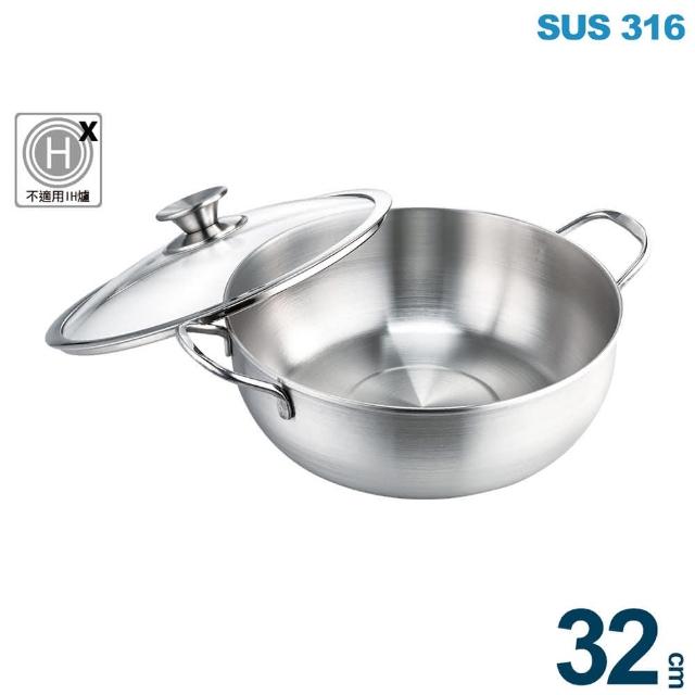 PERFECT 理想台灣製 316不銹鋼火鍋加高萬能鍋32cm湯鍋附玻璃蓋
