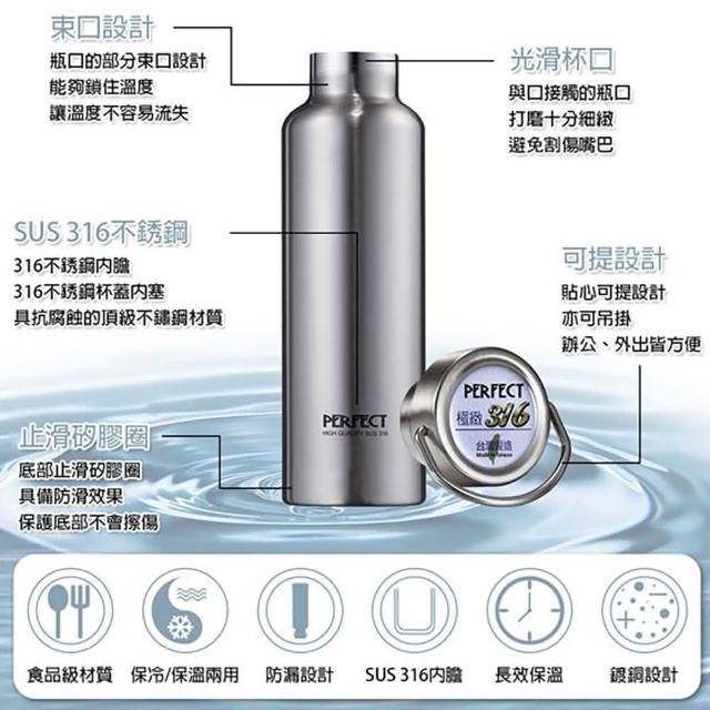 PERFECT 理想台灣製極緻316不鏽鋼1000ml提手保冰保溫杯 ( 保冷瓶 保溫瓶 保溫杯 316保溫杯)