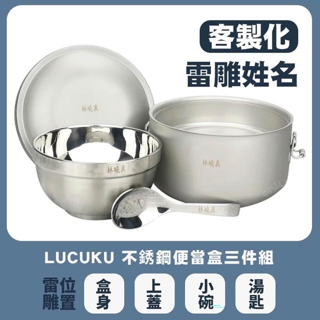 可雷雕姓名-Lucuku不銹鋼隔熱便當盒14cm+隔熱碗+兒童匙國小餐具三件組 開學