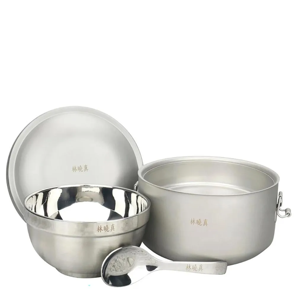 可雷雕姓名-Lucuku不銹鋼隔熱便當盒14cm+隔熱碗+兒童匙國小餐具三件組 開學