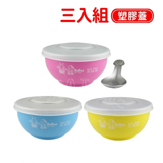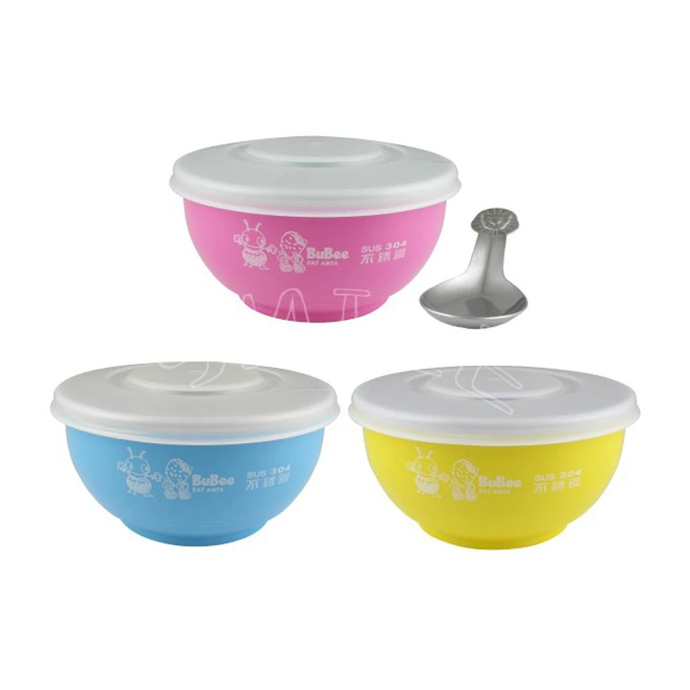 寶石牌 香醇不銹鋼兒童隔熱碗三入組PE蓋(兒童碗 幼稚圖 三色碗)