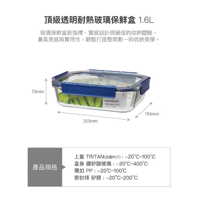 LocknLock 樂扣樂扣頂級耐熱玻璃保鮮盒1600ML-1入微波便當盒保存盒