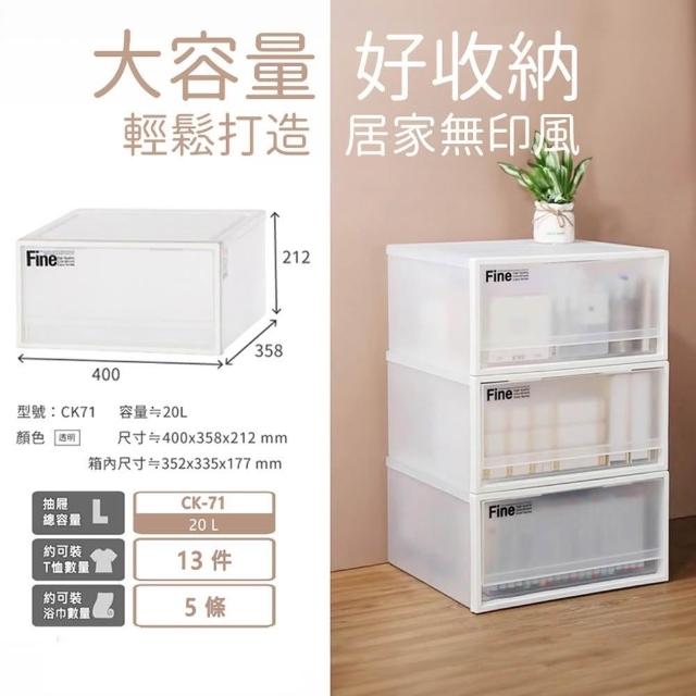 KEYWAY 聯府20L透白抽屜收納箱3入台灣製造20L單抽X3/雙抽X3 ( 可堆疊Fine透白抽屜整理箱 無印風 CK71 CK72)