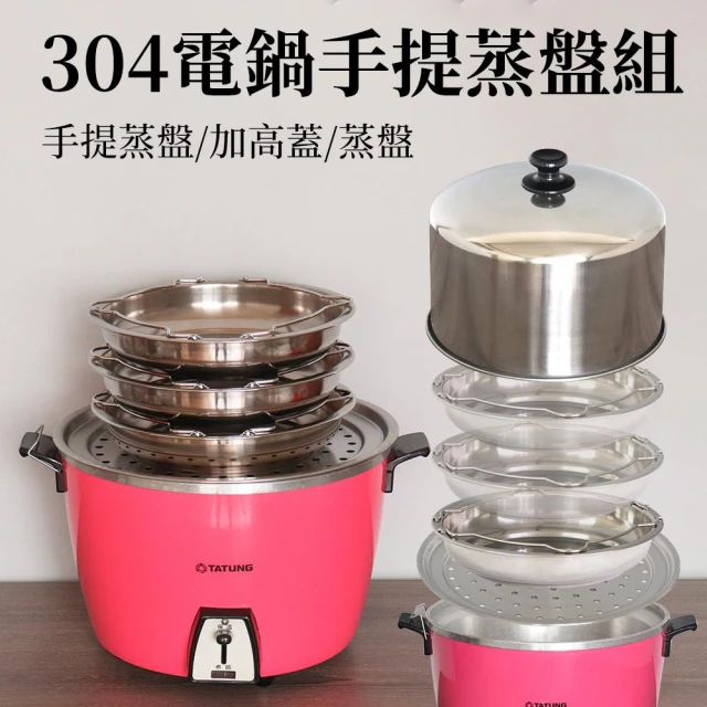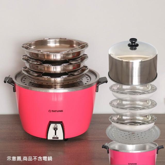 304不鏽鋼手提蒸盤5入組-手提淺型蒸盤3入+蒸盤1入+10人份加高蓋1入 (適用大同電鍋10人份)