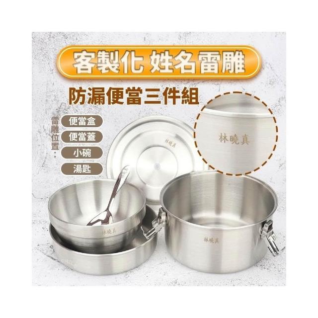 PERFECT 理想可雷雕姓名-316不鏽鋼防漏便當盒14cm+隔熱碗+兒童匙國小餐具三件組 開學
