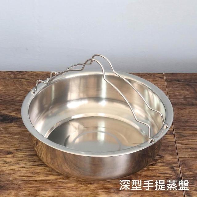 304電鍋手提蒸盤四件組 不鏽鋼深蒸盤1入+手提淺蒸盤1入+蒸盤1入+10人份加高鍋蓋1入(萬用蒸盤電鍋加高蓋)