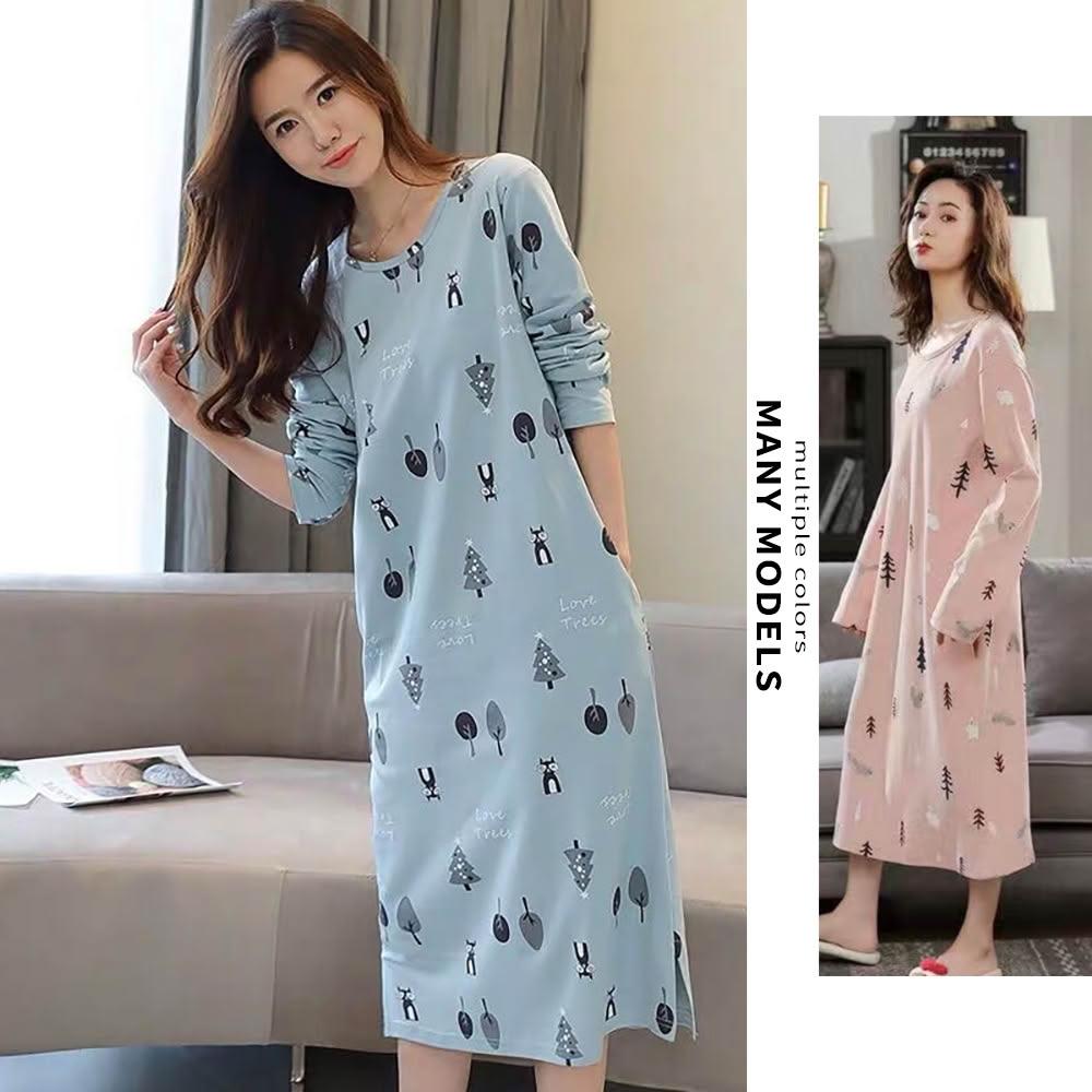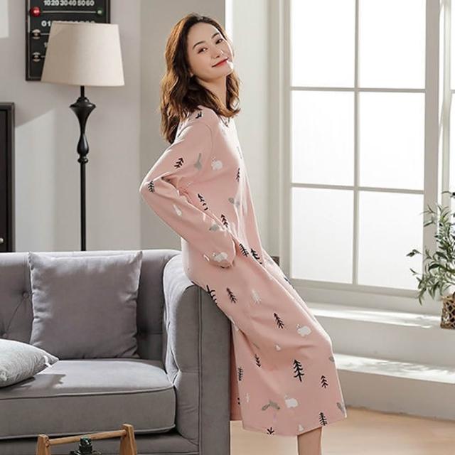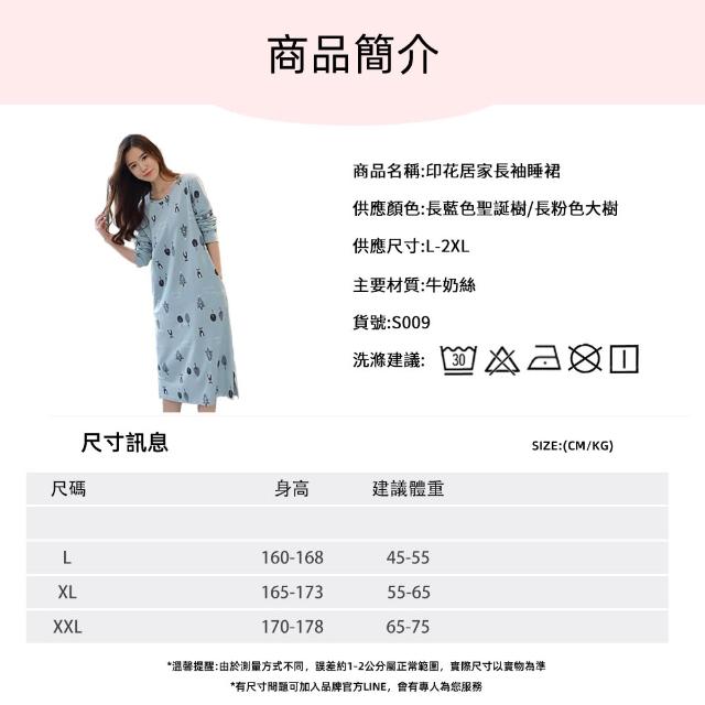 STizi 史堤茲印花居家長袖睡裙 睡袍 連身睡衣(S009)