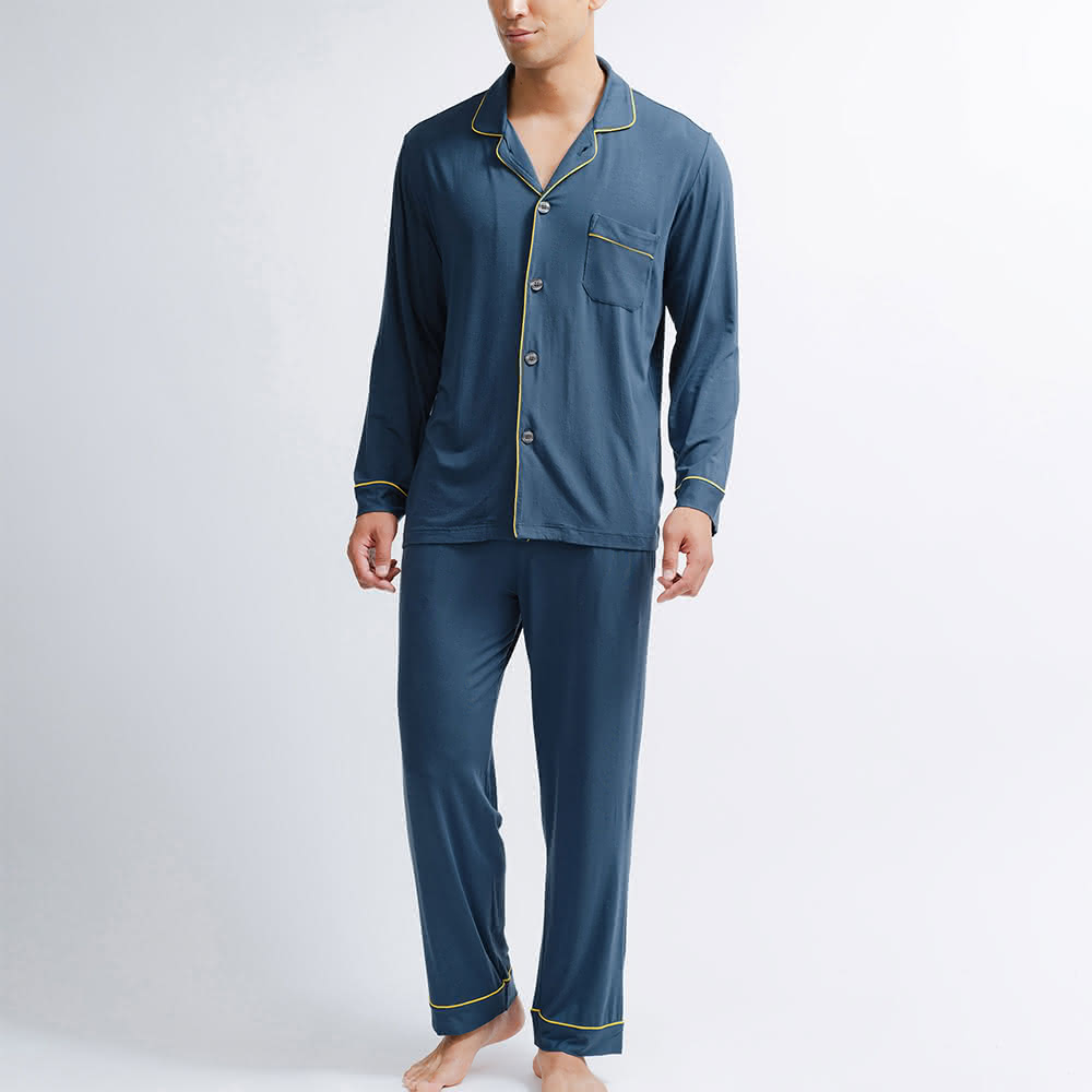 天絲男長袖睡衣套裝