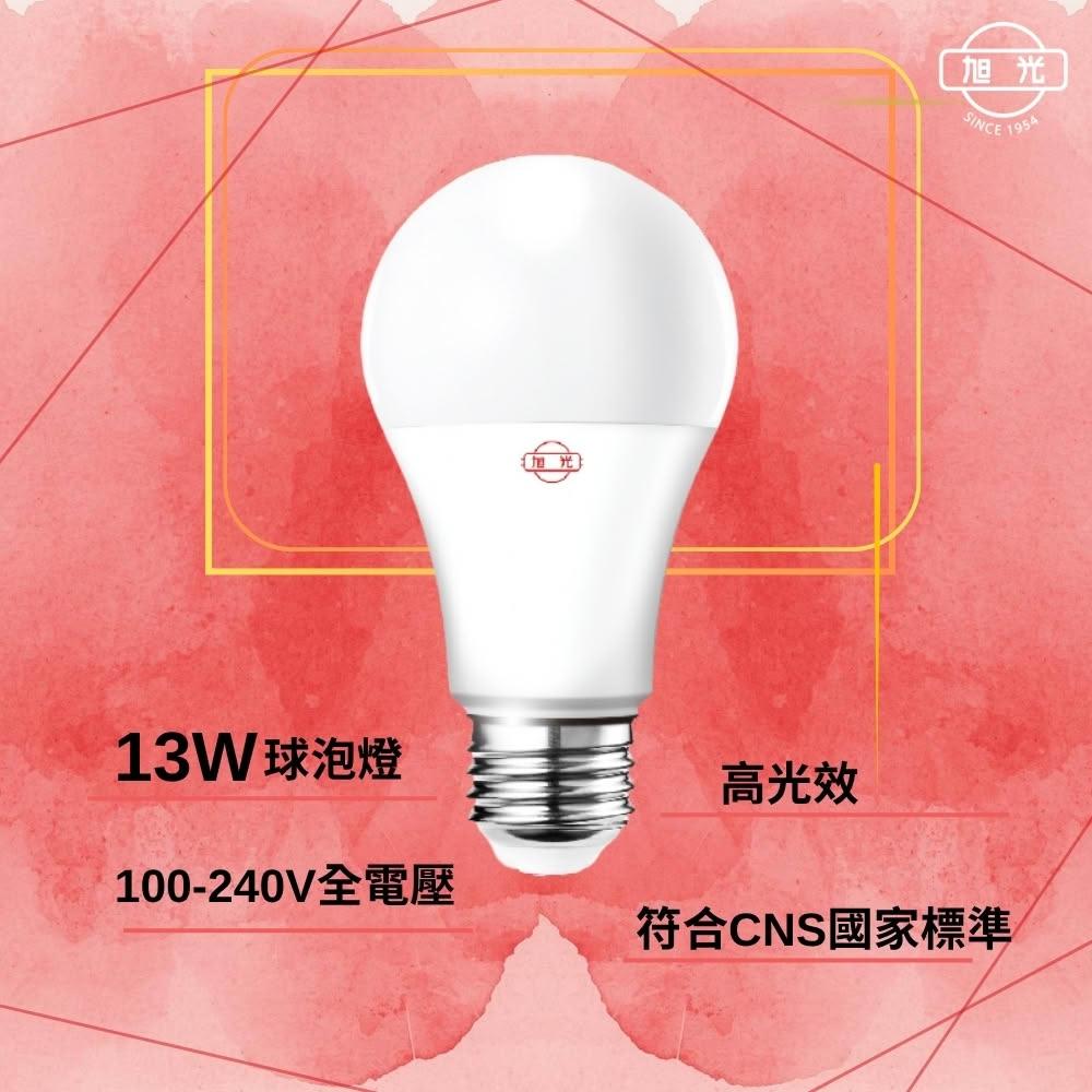 旭光LED燈泡 LED球泡 13W 13瓦 E27 高光效燈泡 全電壓 室內照明燈 球泡燈(白光 黃光 自然光)