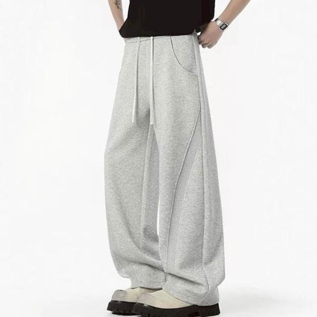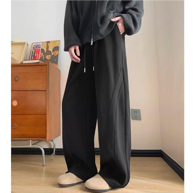 AMERO男女同款 休閒長褲 彎刀設計 聚酯纖維材質 立體挺拔 輕便 鬆緊褲頭