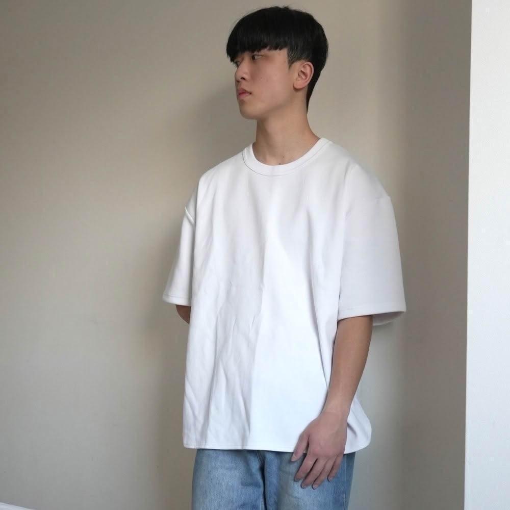 AMERO台灣製造 男女同款 短袖圓領T恤 圓弧下擺 落肩 太空棉材質:白色