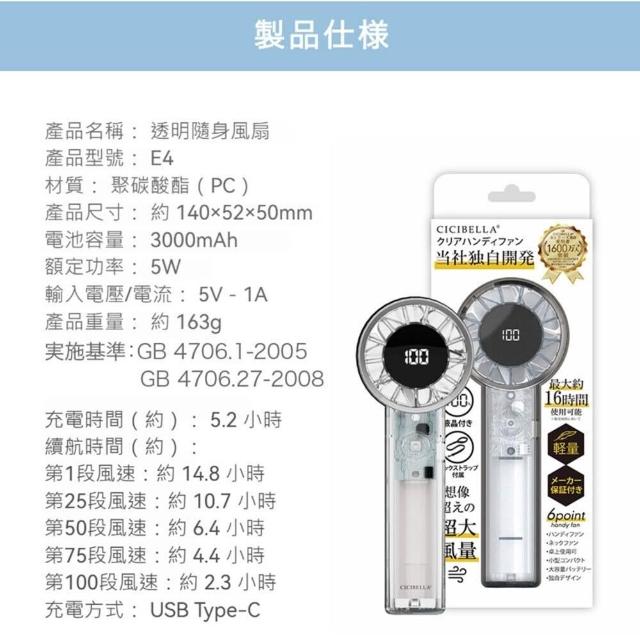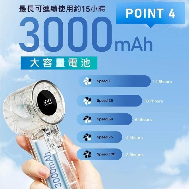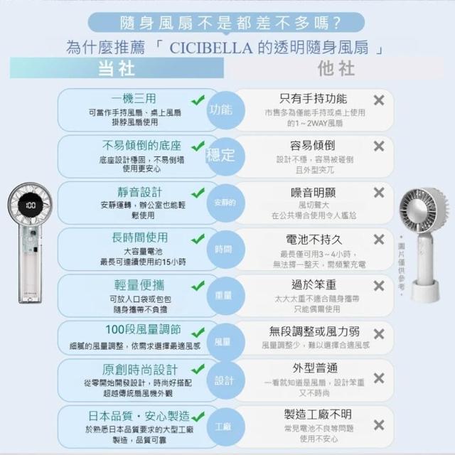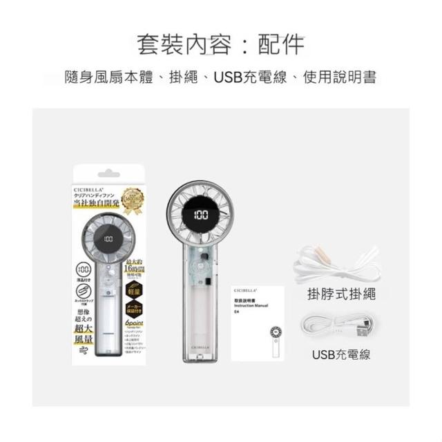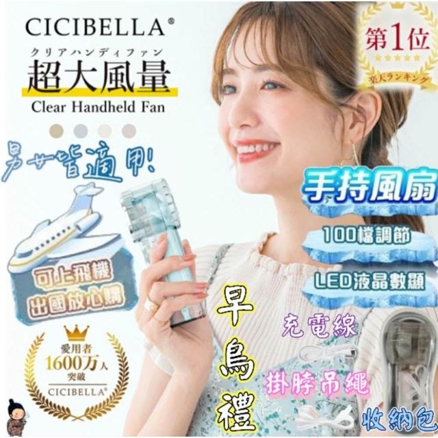 CICIBELLA早鳥活動🥇多收納包🏆️❄️日本SNS上引起熱議手持電風扇 (100檔風速/緊急充電/USB/頸掛手持/LED螢幕)