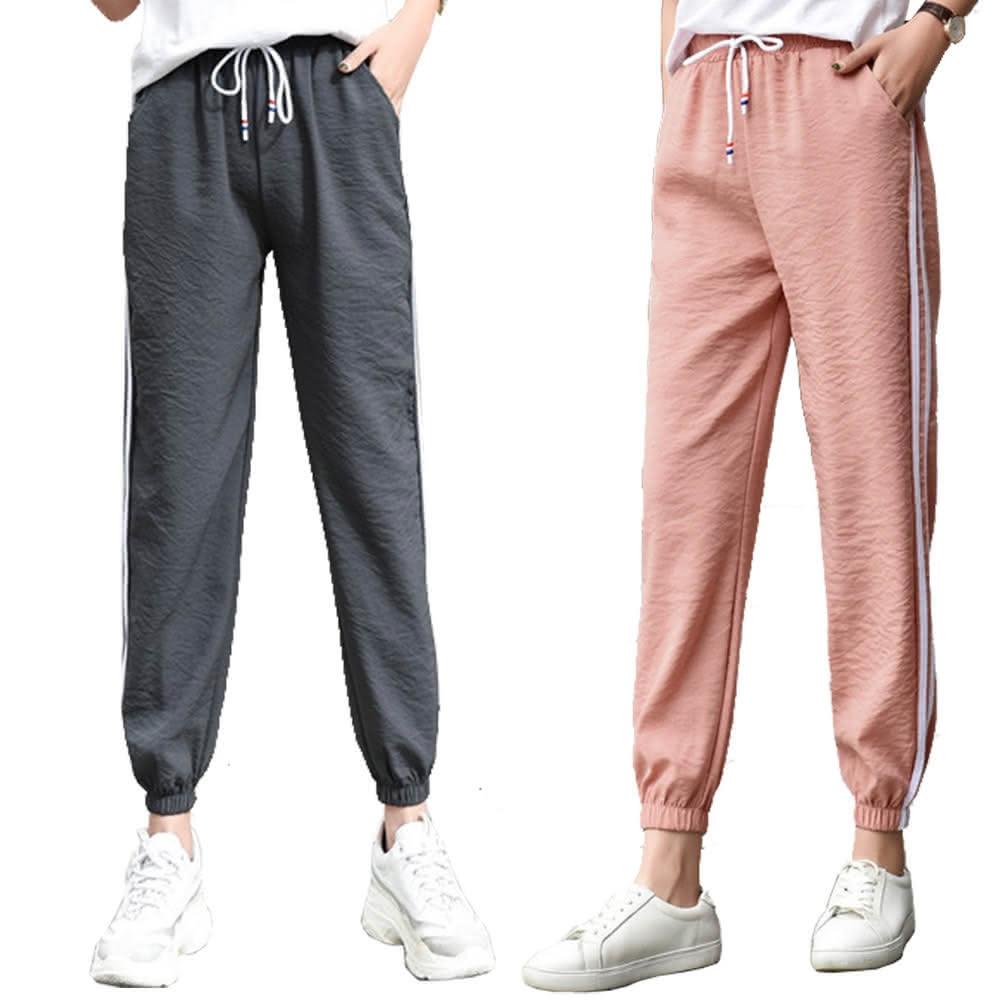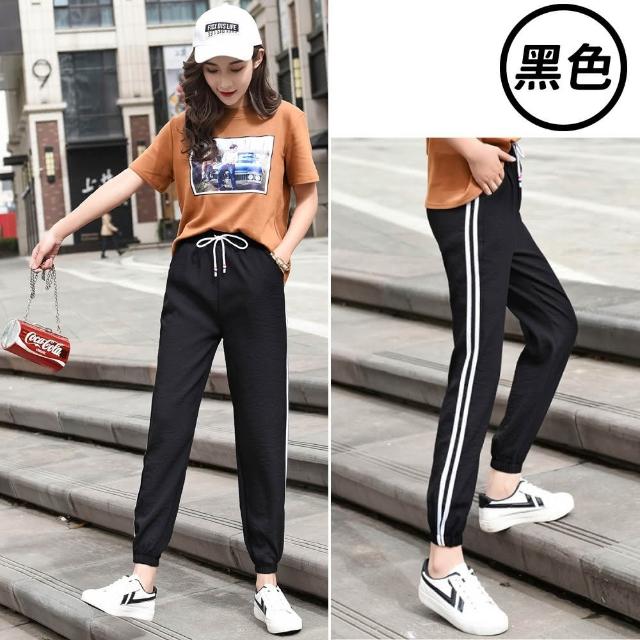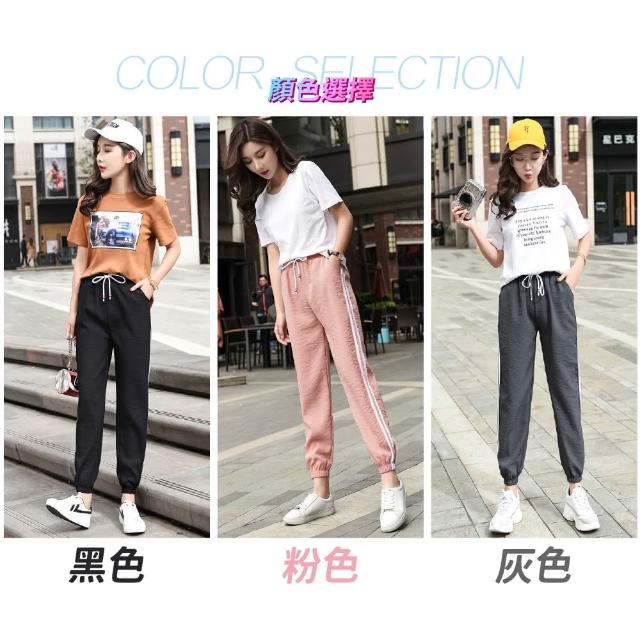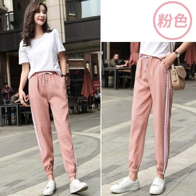 NEW POWER大碼條紋女運動束口褲-3色可選(偏小碼/哈倫褲/顯瘦小腳)