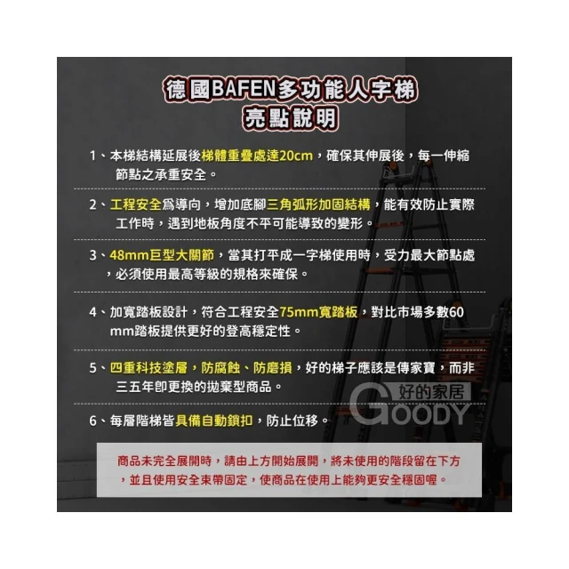 多功能人字梯 德國BAFEN⭐國際檢驗 原廠授權 二代升級版 好的家居(工程梯 鋁梯 人字梯 伸縮梯)