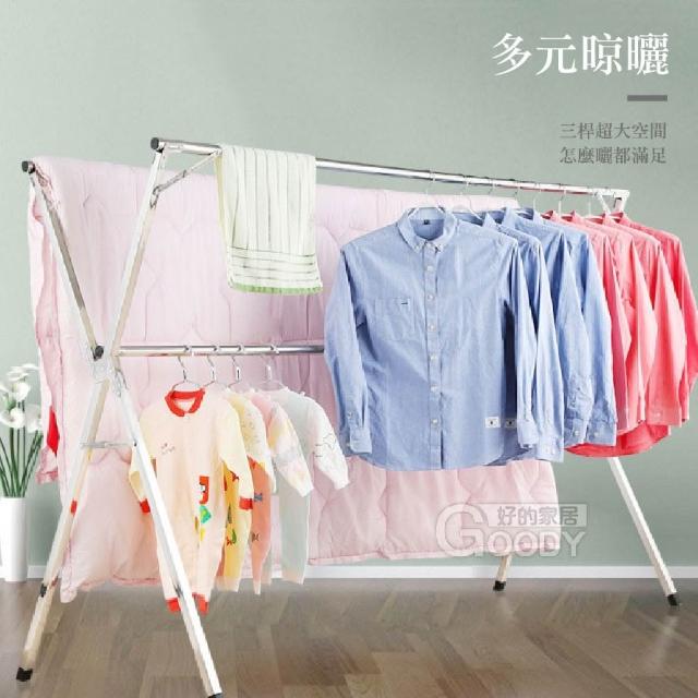X型不鏽鋼曬衣架 1.6M/2.4M/2.4M帶輪 好的家居(伸縮曬衣架 晾衣架 晾衣桿 防風衣架 折疊晾衣架 不鏽鋼衣架曬衣桿)