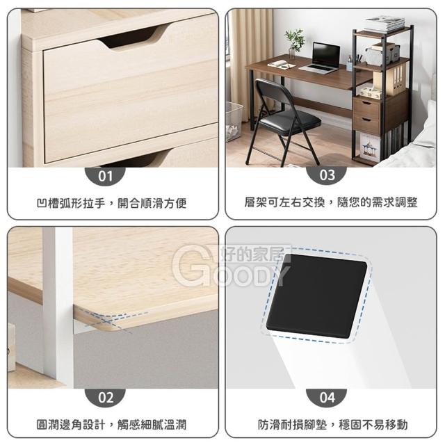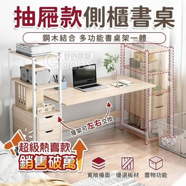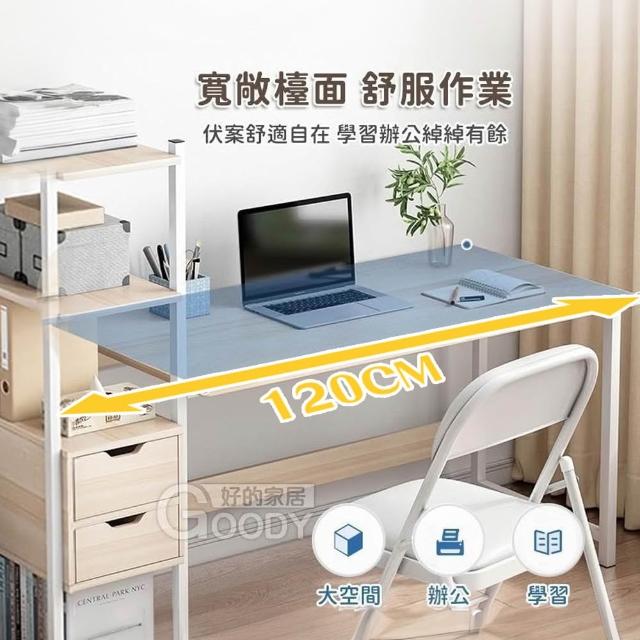 好的家居 120CM寬加高側櫃雙抽屜書桌組 可左右移動 ( 書架 收納架 電腦桌 辦公桌 側櫃 書桌 ) 不含椅