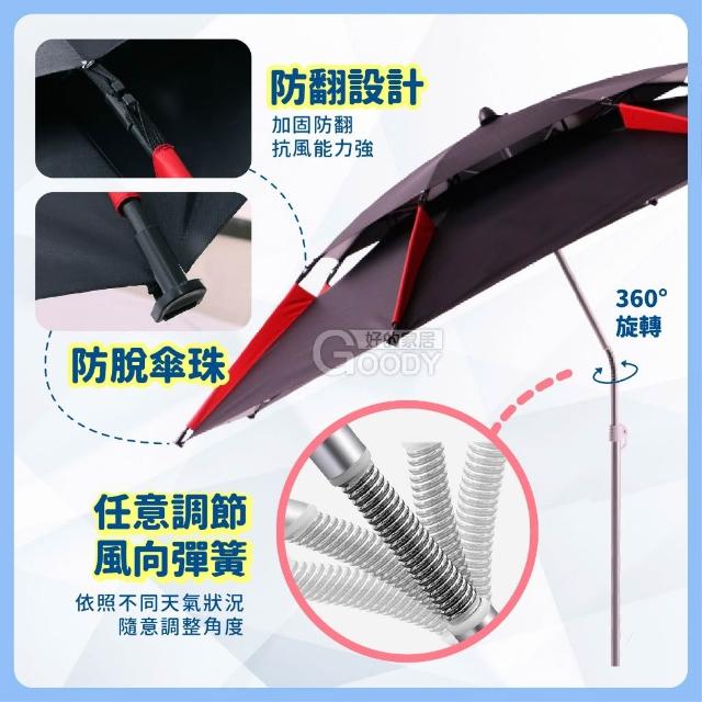 防風雙層遮陽傘 ️一般款/壓膠升級款 天藍/拼綠/拼黃/黑紅 好的家居(釣魚傘 戶外遮陽傘 防風釣魚傘 釣魚遮陽傘 防風釣魚傘 戶外遮陽傘 萬向調節傘)